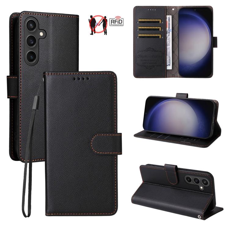 For Samsung Galaxy S23 FE 5G Litchi Texture RFID Blocking 3-Card Wallet Leather Phone Case(Black)