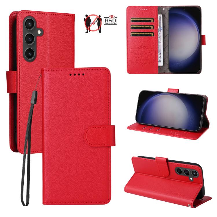 For Samsung Galaxy S23 FE 5G Litchi Texture RFID Blocking 3-Card Wallet Leather Phone Case(Red)
