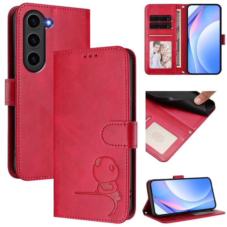 For Samsung Galaxy S23 FE 5G Litter Panda Embossing RFID Leather Phone Case with Lanyard(Rose Red)