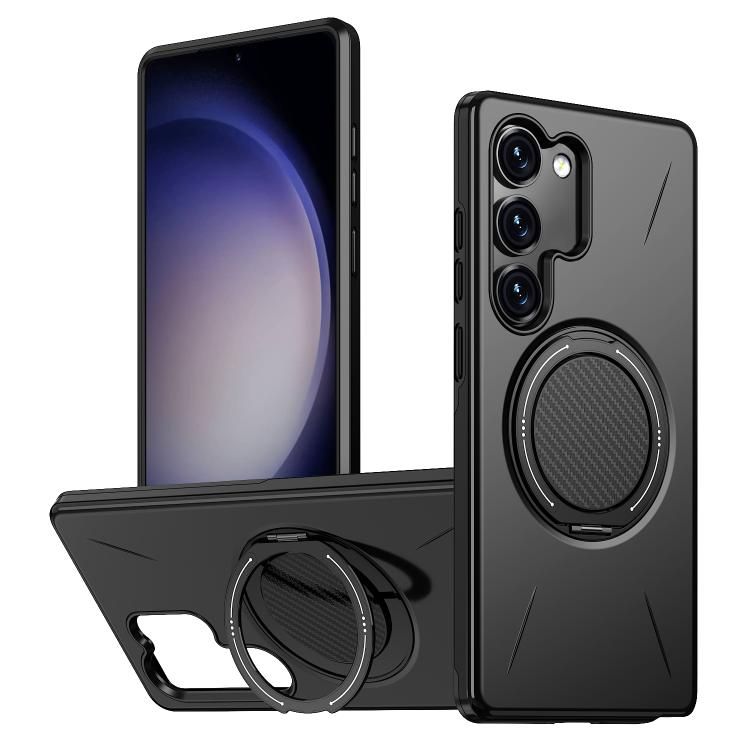 For Samsung Galaxy S23 FE 5G Metal Rotation Holder MagSafe TPU Hybrid PC Phone Case(Black)