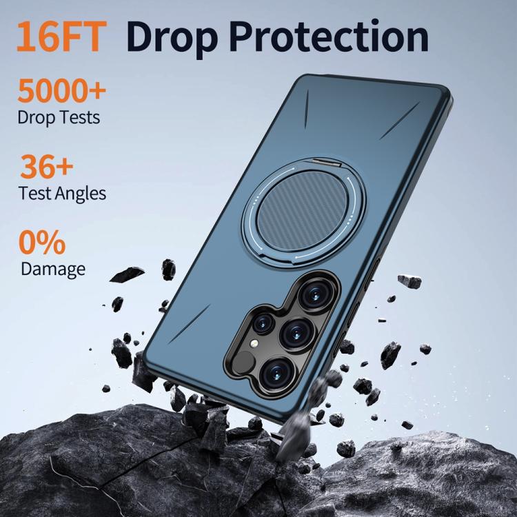 For Samsung Galaxy S23 FE 5G Metal Rotation Holder MagSafe TPU Hybrid PC Phone Case(Navy Blue)