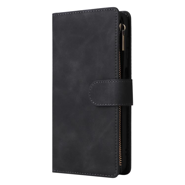 For Samsung Galaxy S23 FE 5G Multifunctional Frosted Zipper Wallet Leather Phone Case(Black)