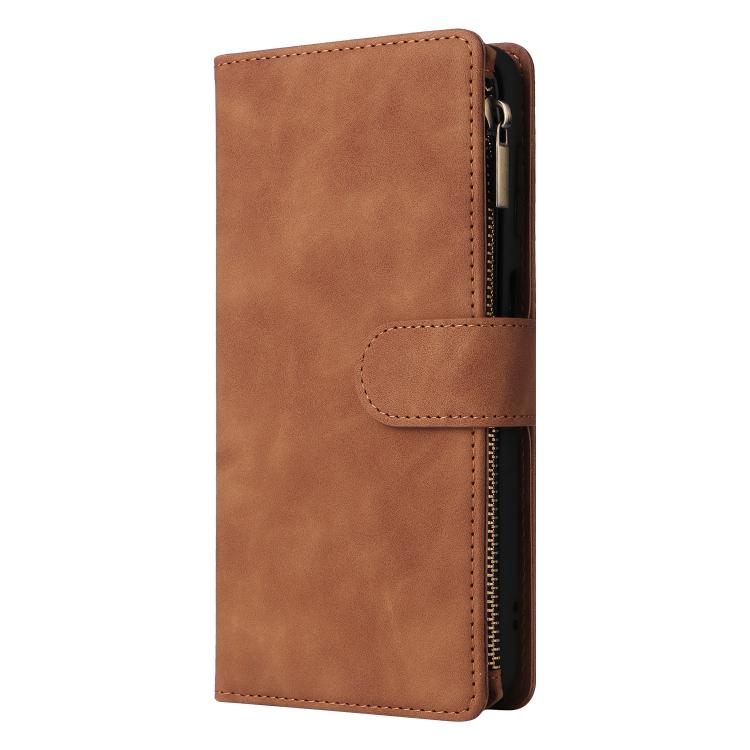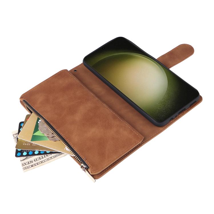 For Samsung Galaxy S23 FE 5G Multifunctional Frosted Zipper Wallet Leather Phone Case(Brown)