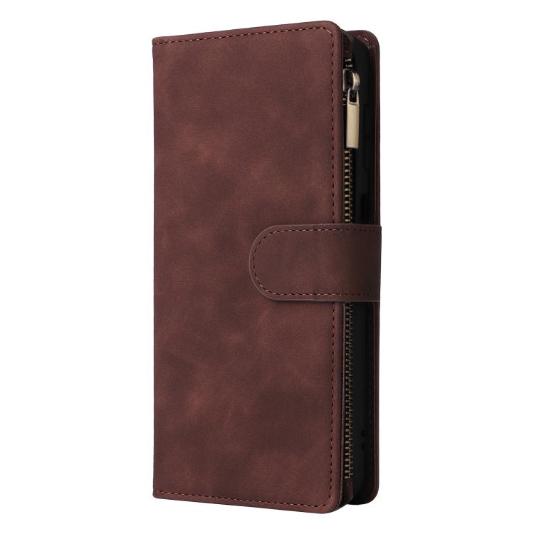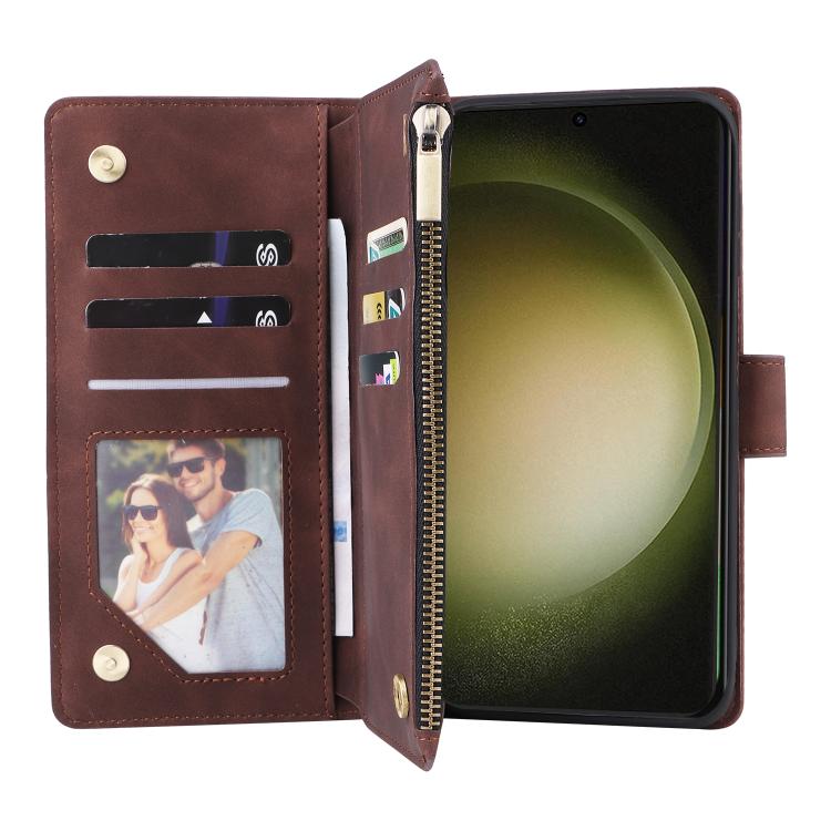 For Samsung Galaxy S23 FE 5G Multifunctional Frosted Zipper Wallet Leather Phone Case(Coffee)