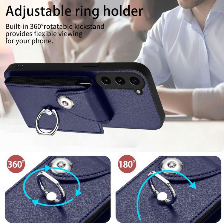 For Samsung Galaxy S23 FE 5G Organ Card Bag Ring Holder Phone Case(Blue)