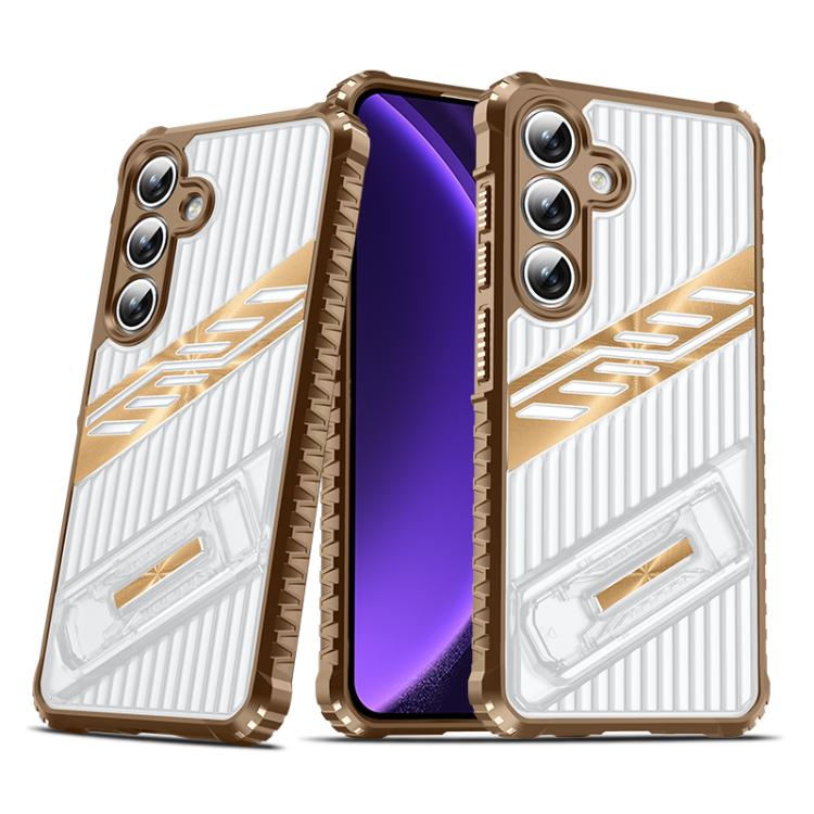 For Samsung Galaxy S23 FE 5G Plating Holder PC Hybrid TPU Phone Case(Desert Gold)
