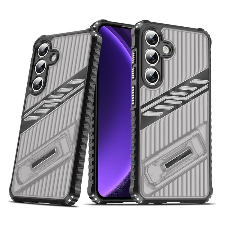 For Samsung Galaxy S23 FE 5G Plating Holder PC Hybrid TPU Phone Case(Gray Black)