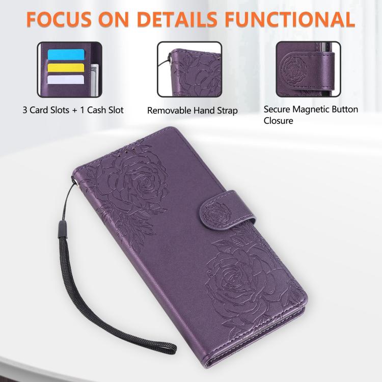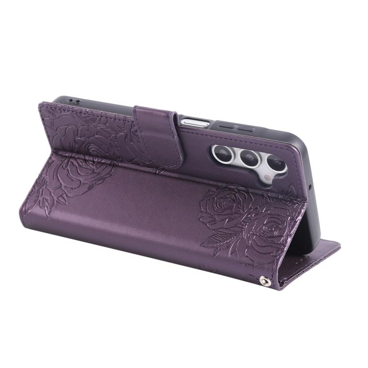 For Samsung Galaxy S23 FE 5G Rose Flower Embossed 3-Card Slots Leather Phone Case(Deep Purple)