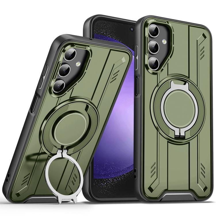 For Samsung Galaxy S23 FE 5G Rotating Ring Holder Magnetic MagSafe Phone Case(Green)