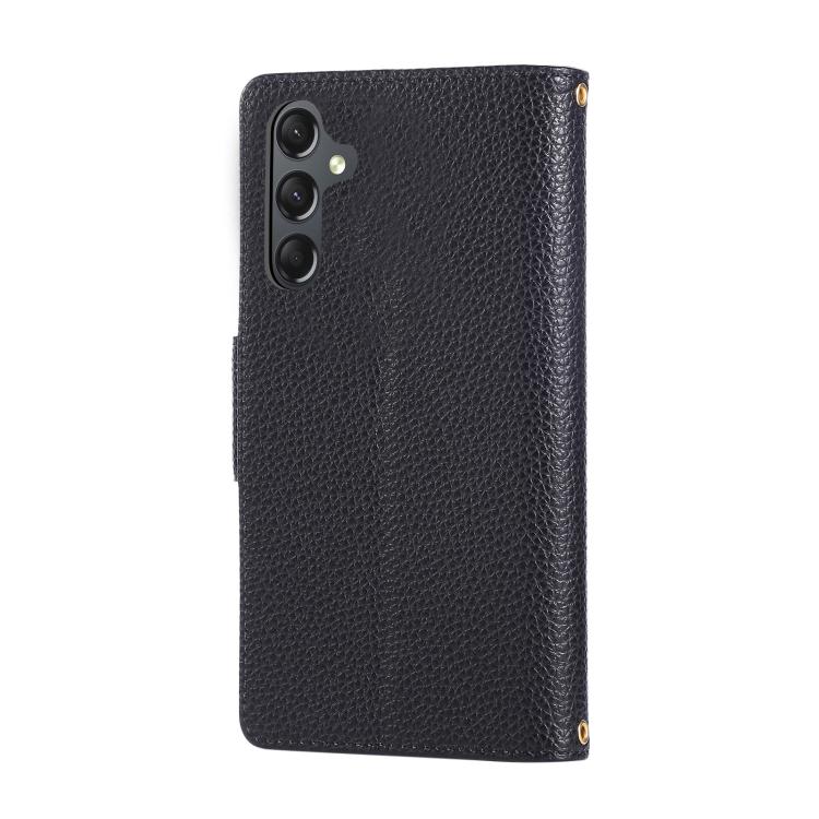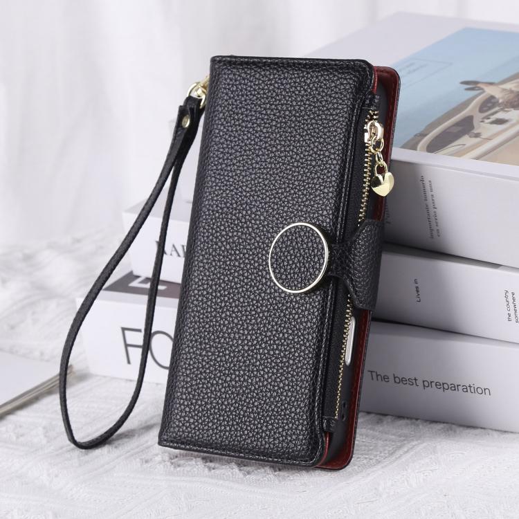 For Samsung Galaxy S23 FE 5G Round Buckle Zipper Wallet Leather Phone Case with Crossbody Strap(Black)