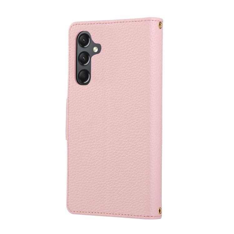 For Samsung Galaxy S23 FE 5G Round Buckle Zipper Wallet Leather Phone Case with Crossbody Strap(Pink)