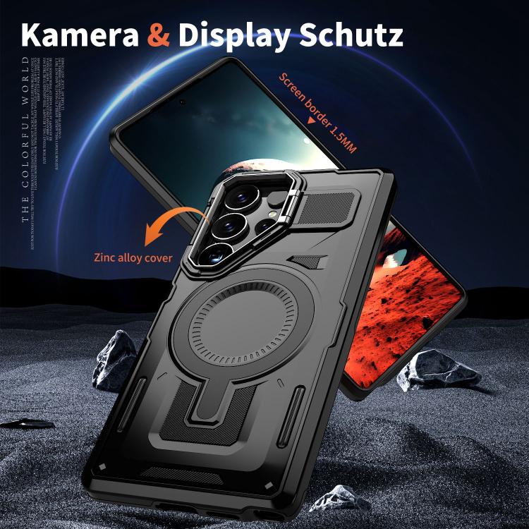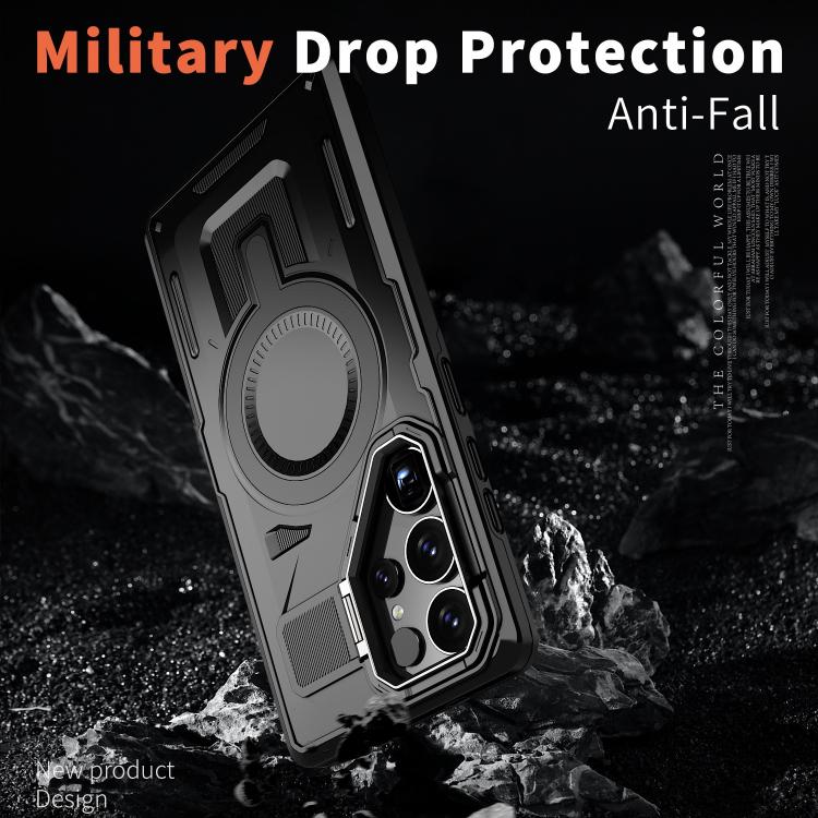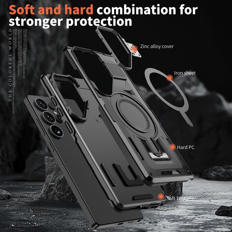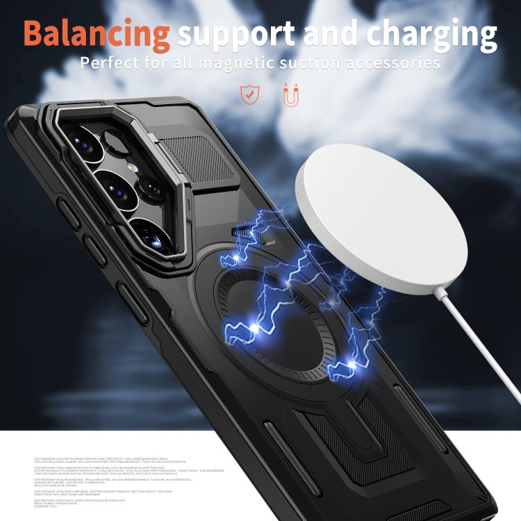 For Samsung Galaxy S23 FE 5G Shield Hollow Frame Holder MagSafe Phone Case(Black)