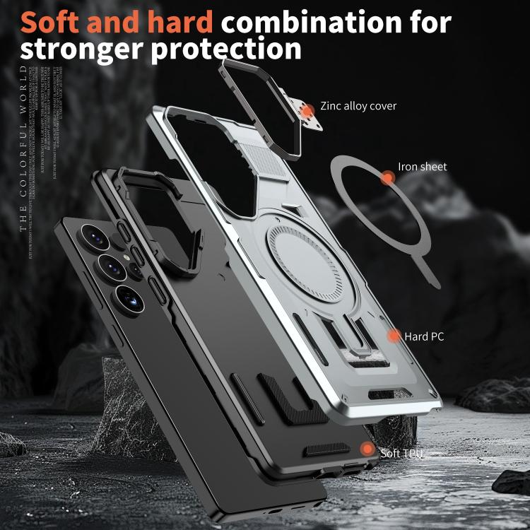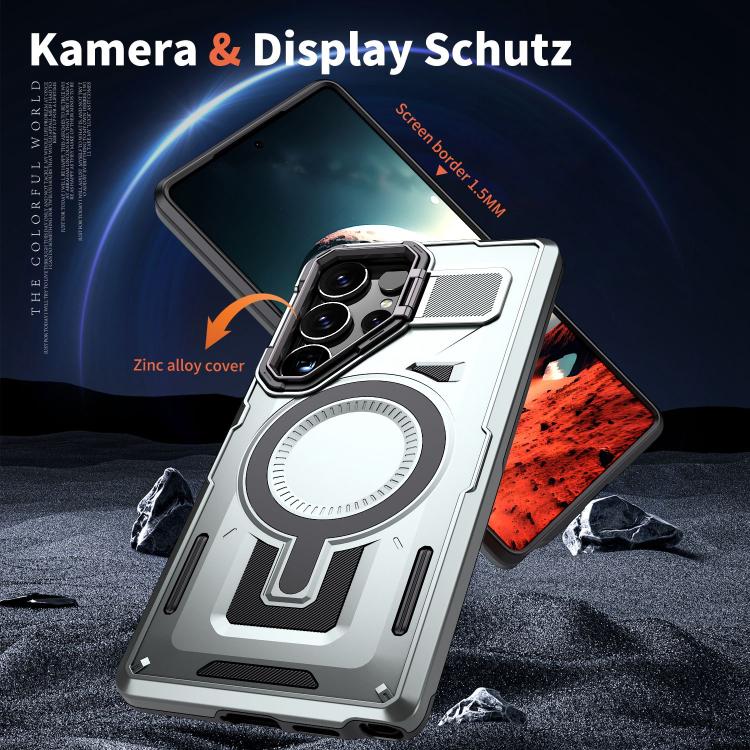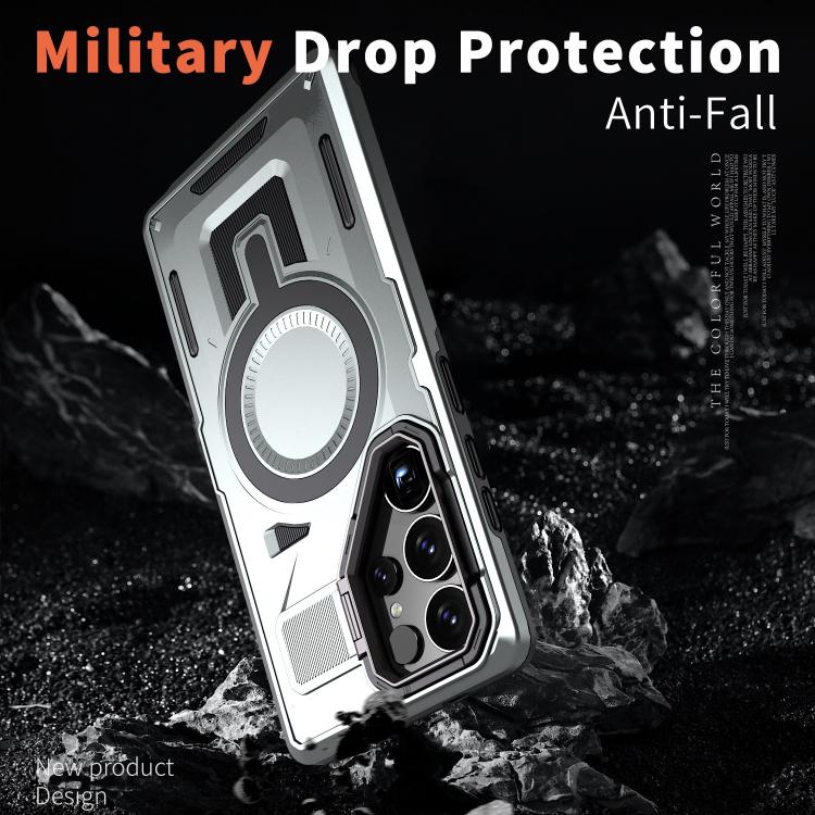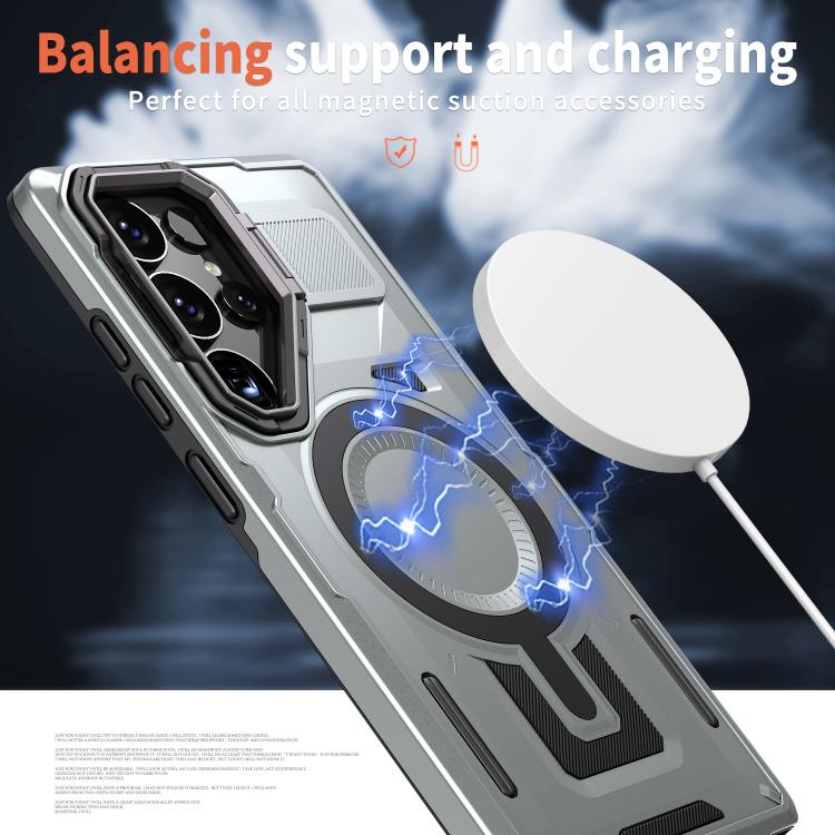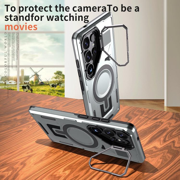For Samsung Galaxy S23 FE 5G Shield Hollow Frame Holder MagSafe Phone Case(Grey)