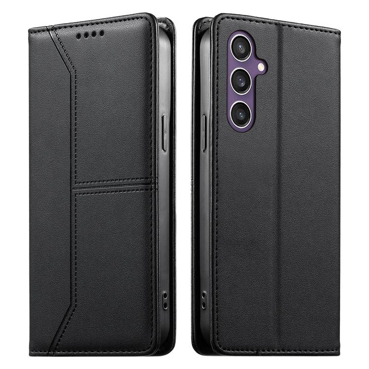 For Samsung Galaxy S23 FE 5G Stitched Line Magnetic RFID Vegan Leather Phone Case(Black)