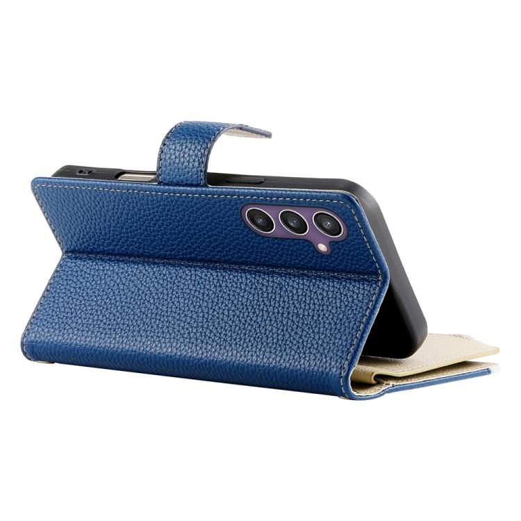 For Samsung Galaxy S23 FE 5G Stitching Multi-card Zipper Wallet Leather Phone Case with Short Strap(Dark Blue)