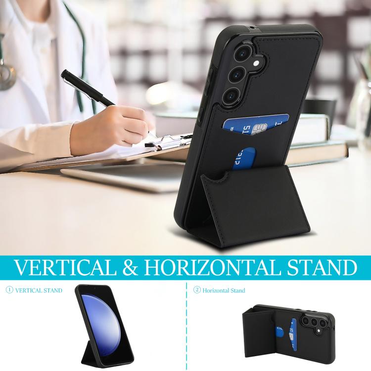 For Samsung Galaxy S23 FE 5G Tri-fold Holder Leather Phone Case with Card Slot(Black)