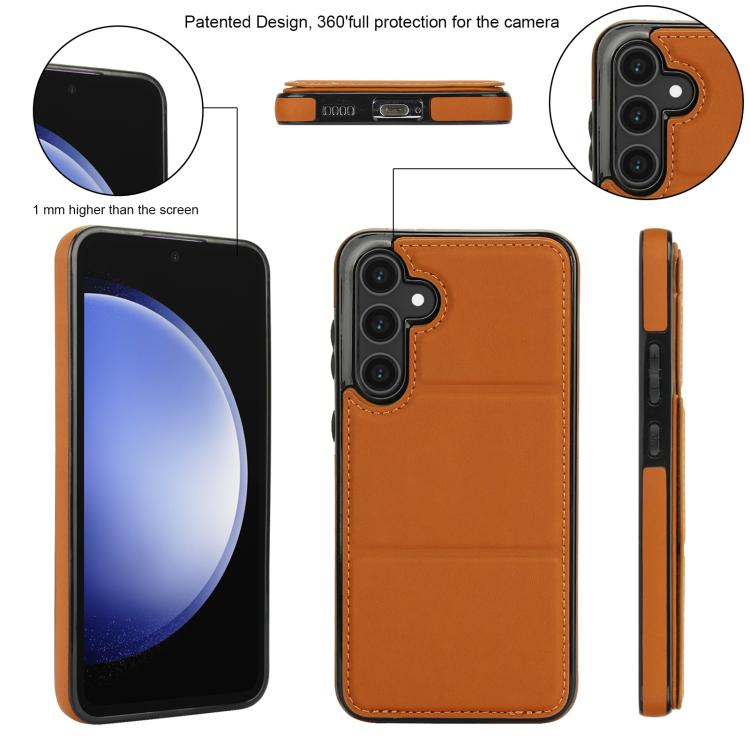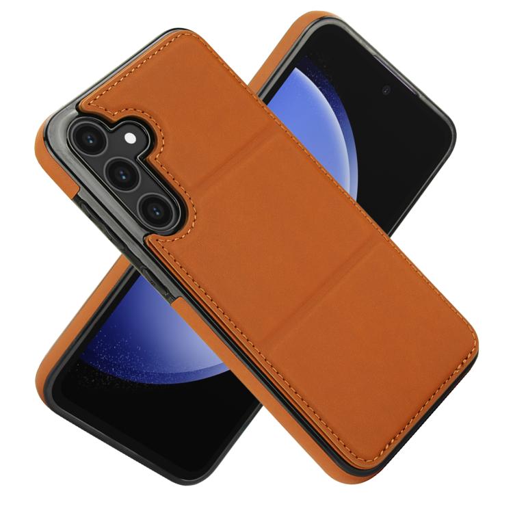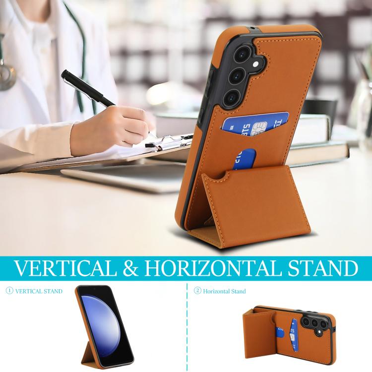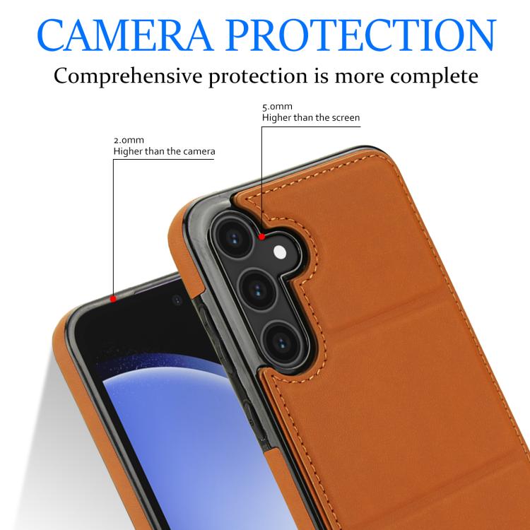 For Samsung Galaxy S23 FE 5G Tri-fold Holder Leather Phone Case with Card Slot(Brown)
