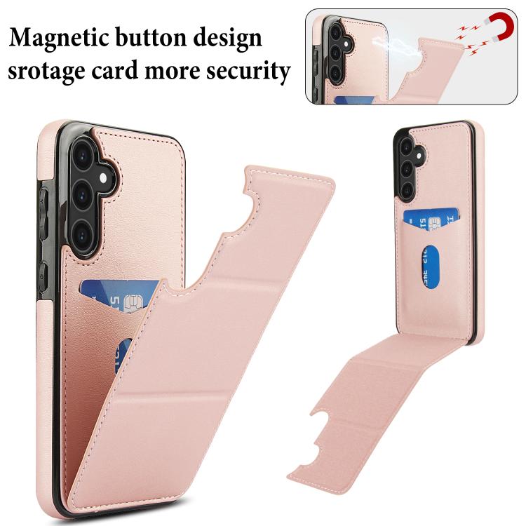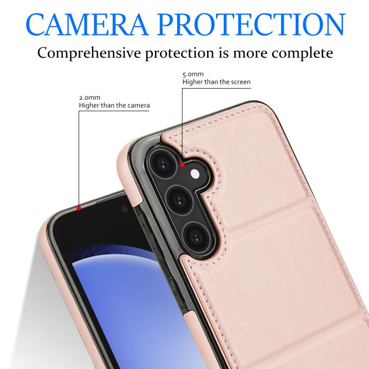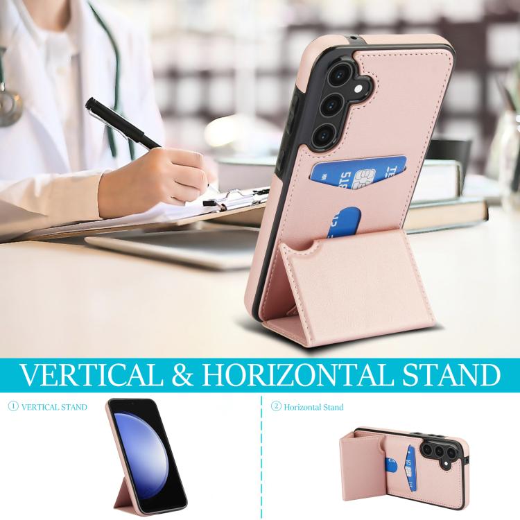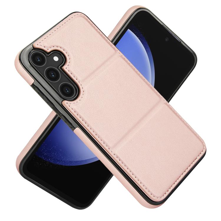 For Samsung Galaxy S23 FE 5G Tri-fold Holder Leather Phone Case with Card Slot(Rose Gold)