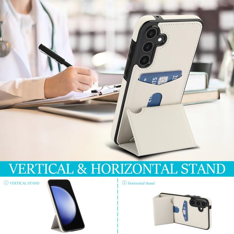 For Samsung Galaxy S23 FE 5G Tri-fold Holder Leather Phone Case with Card Slot(White)