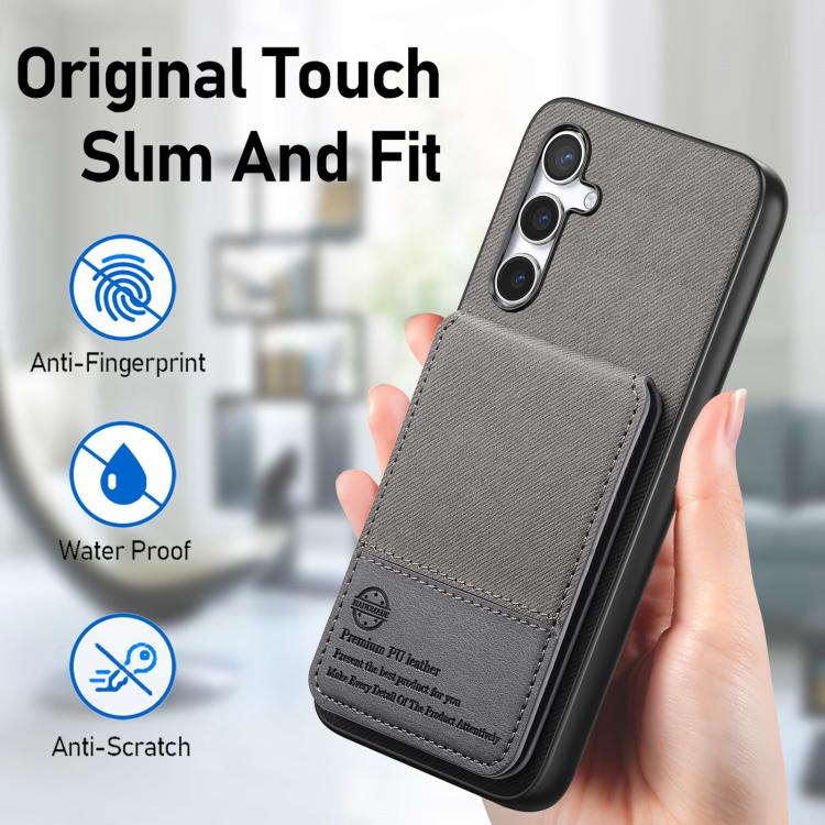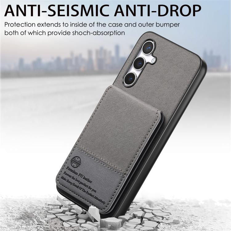 For Samsung Galaxy S23 FE 5G Twill Fabric Leather Vertical Flip RFID Card Bag Phone Case(Gray)
