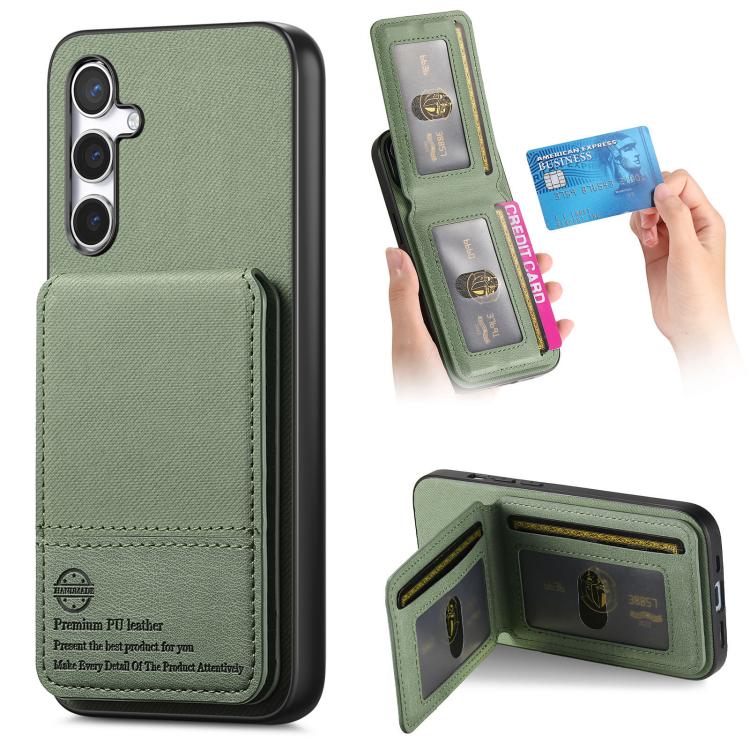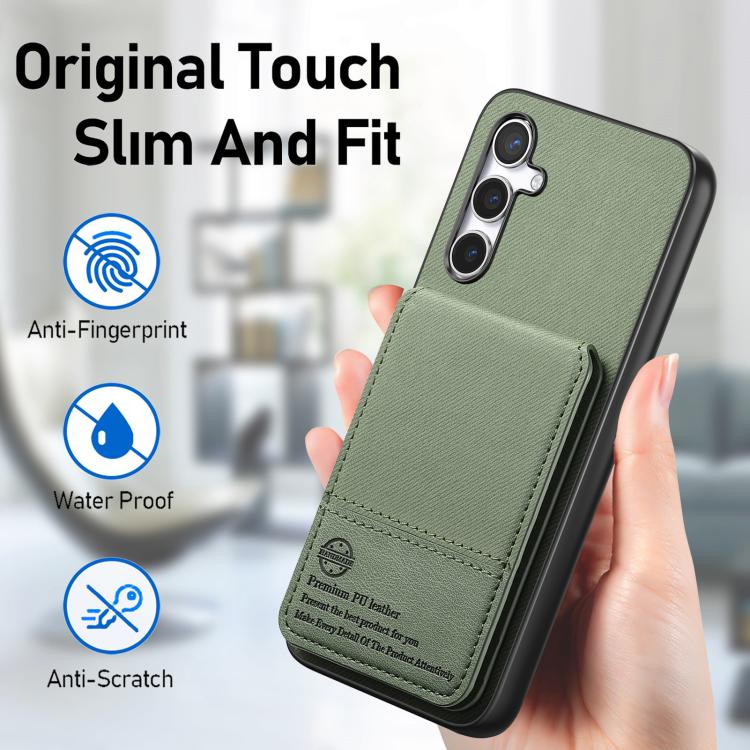 For Samsung Galaxy S23 FE 5G Twill Fabric Leather Vertical Flip RFID Card Bag Phone Case(Green)