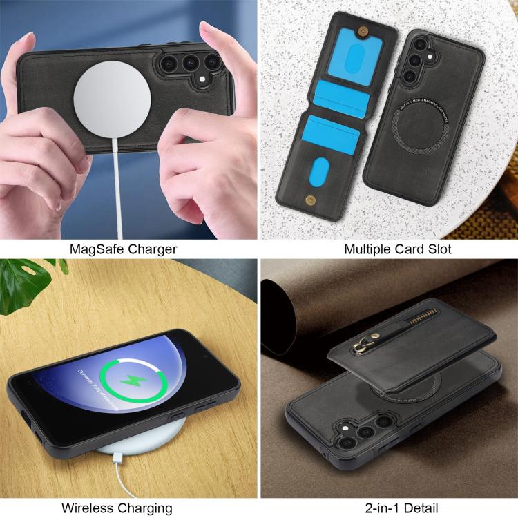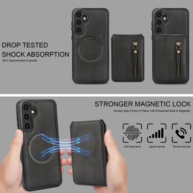 For Samsung Galaxy S23 FE 5G Zipper Wallet Split MagSafe Leather Back Phone Case(Black)