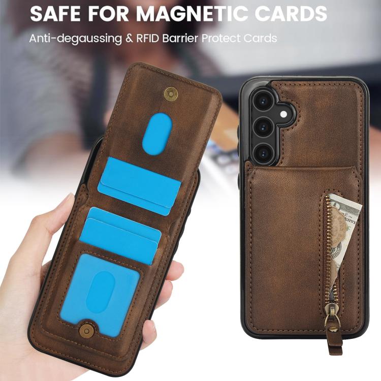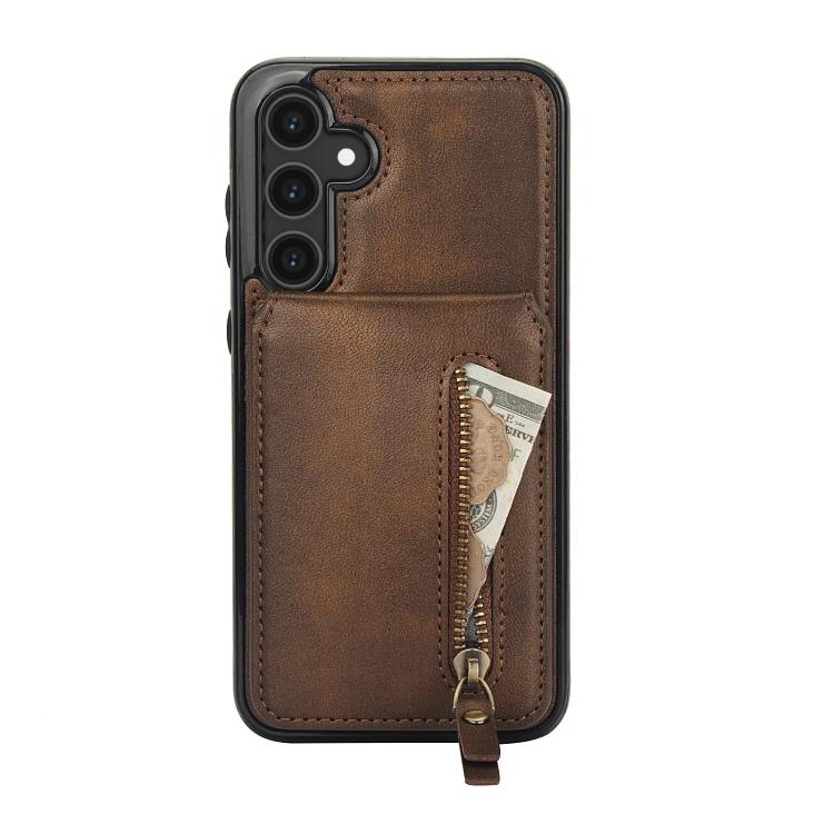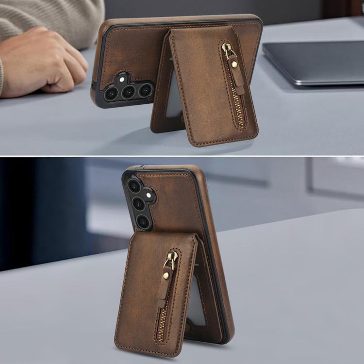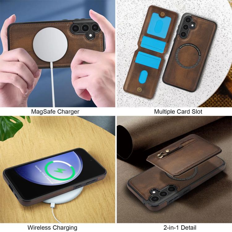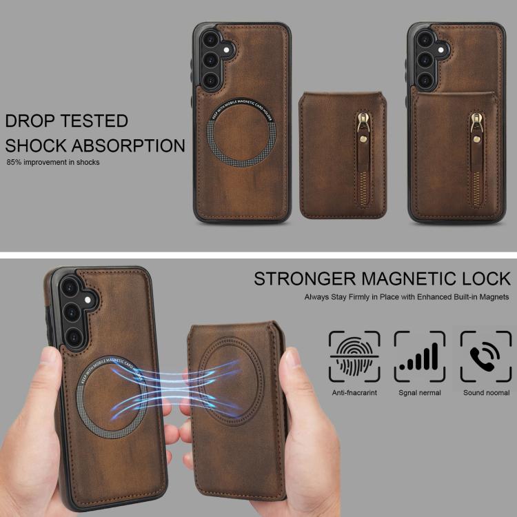 For Samsung Galaxy S23 FE 5G Zipper Wallet Split MagSafe Leather Back Phone Case(Brown)