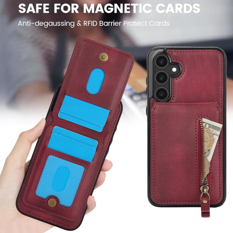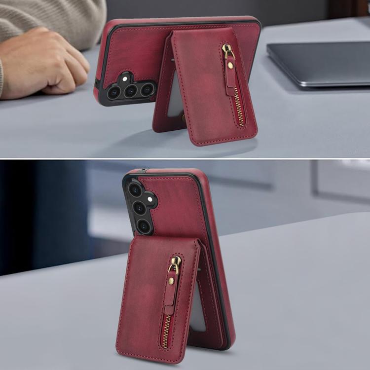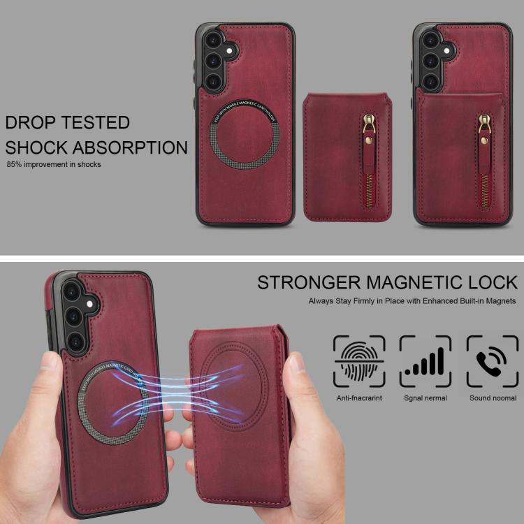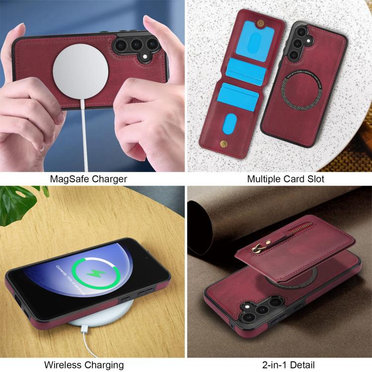 For Samsung Galaxy S23 FE 5G Zipper Wallet Split MagSafe Leather Back Phone Case(Red)