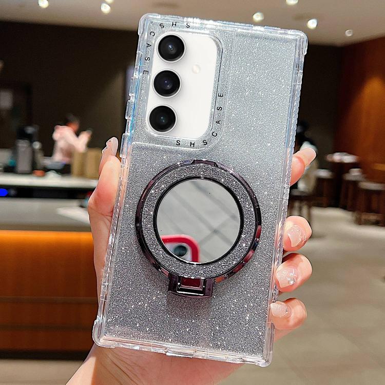 For Samsung Galaxy S23 FE Mirror Holder Glitterr MagSafe Phone Case(Black)