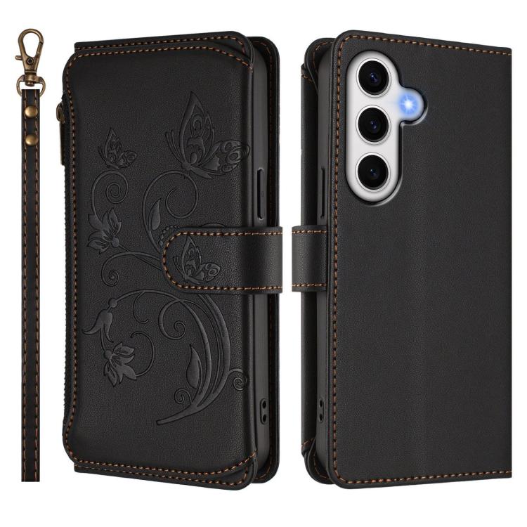 For Samsung Galaxy S24 FE 5G Butterfly Love Flower Multi-card Zipper Wallet Leather Phone Case(Black)