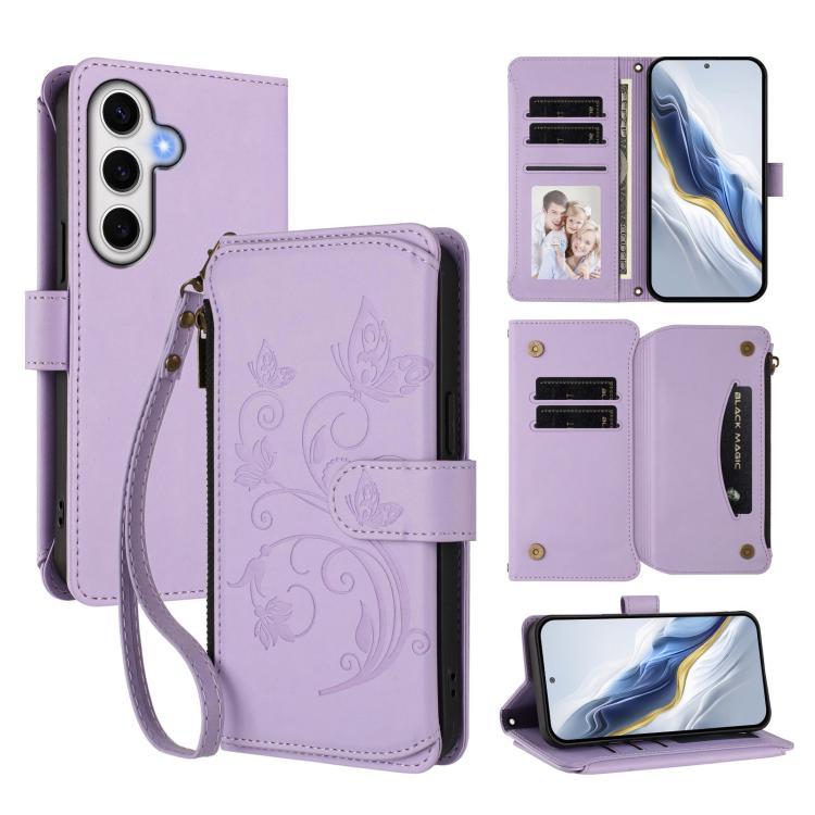 For Samsung Galaxy S24 FE 5G Butterfly Love Flower Multi-card Zipper Wallet Leather Phone Case(Light Purple)