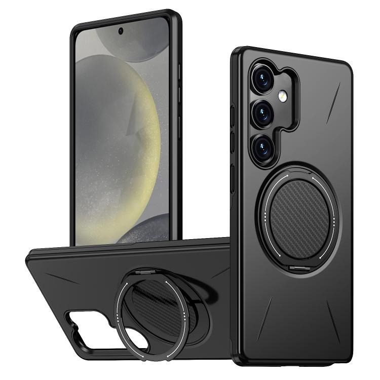 For Samsung Galaxy S24 FE 5G Metal Rotation Holder MagSafe TPU Hybrid PC Phone Case(Black)
