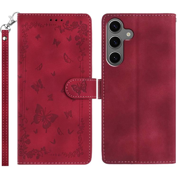 For Samsung Galaxy S24 FE 5G Secret Garden Butterfly Pattern Leather Phone Case(Red)