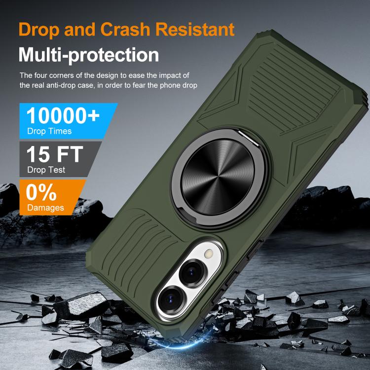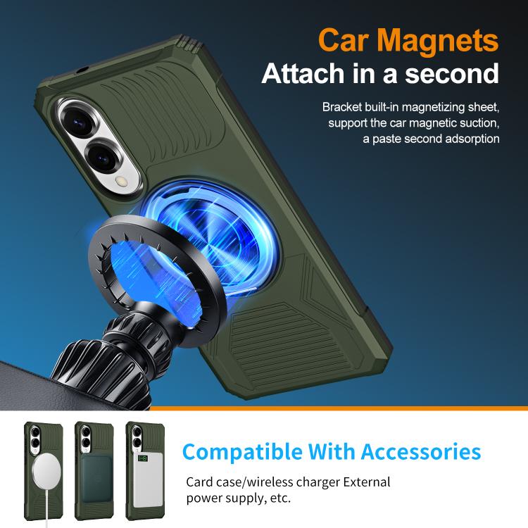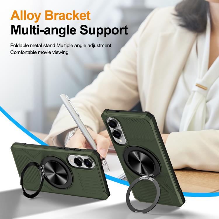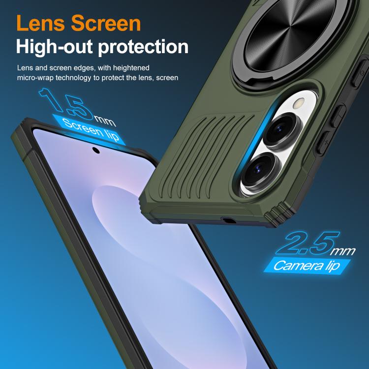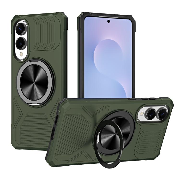 For Samsung Galaxy S25 Edge 5G Alloy Rotating Holder MagSafe Shockproof Phone Case(Army Green)