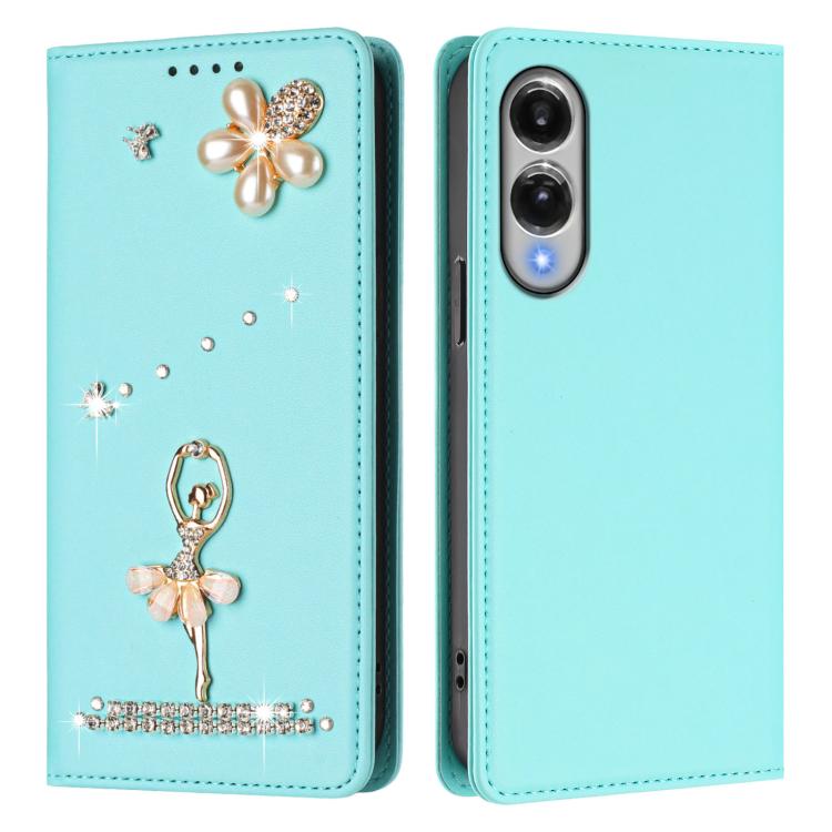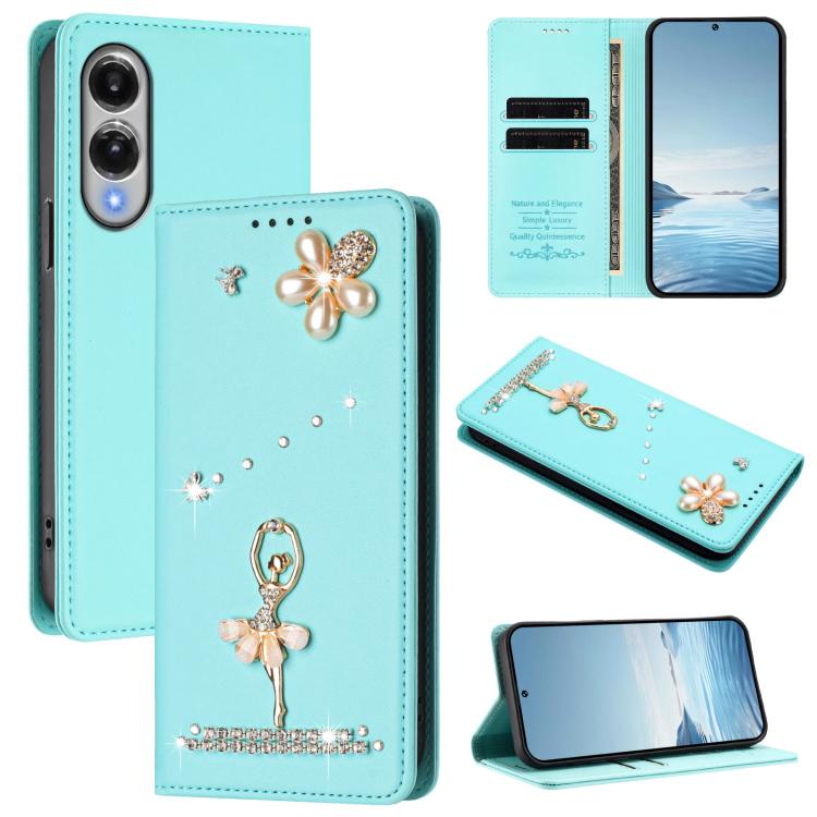 For Samsung Galaxy S25 Edge 5G Ballet Girl Diamond Studded RFID Vegan Leather Phone Case(Mint Green)