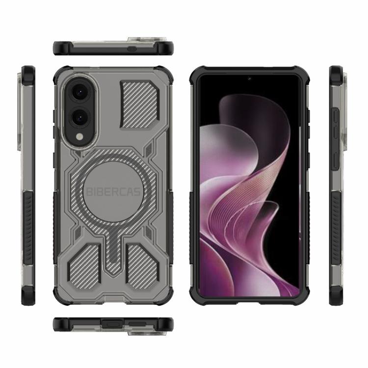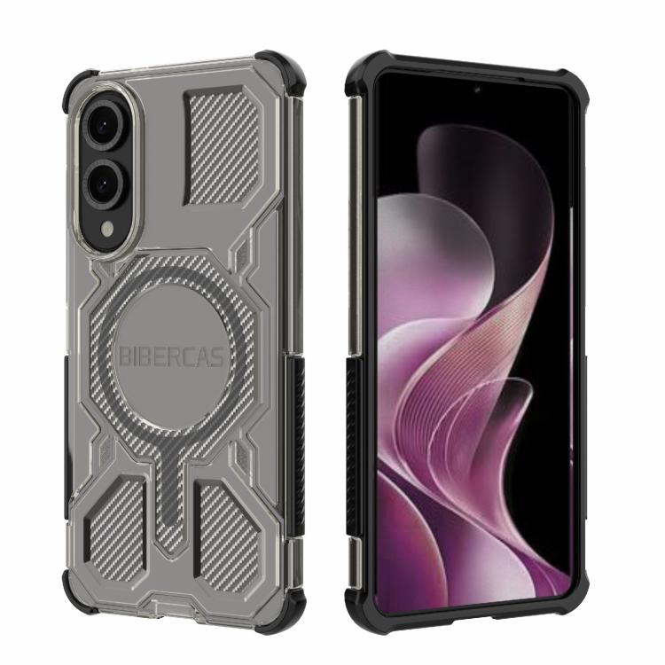 For Samsung Galaxy S25 Edge 5G BIBERCAS Transparent Color Series MagSafe Air Bag Shockproof Phone Case(Black)
