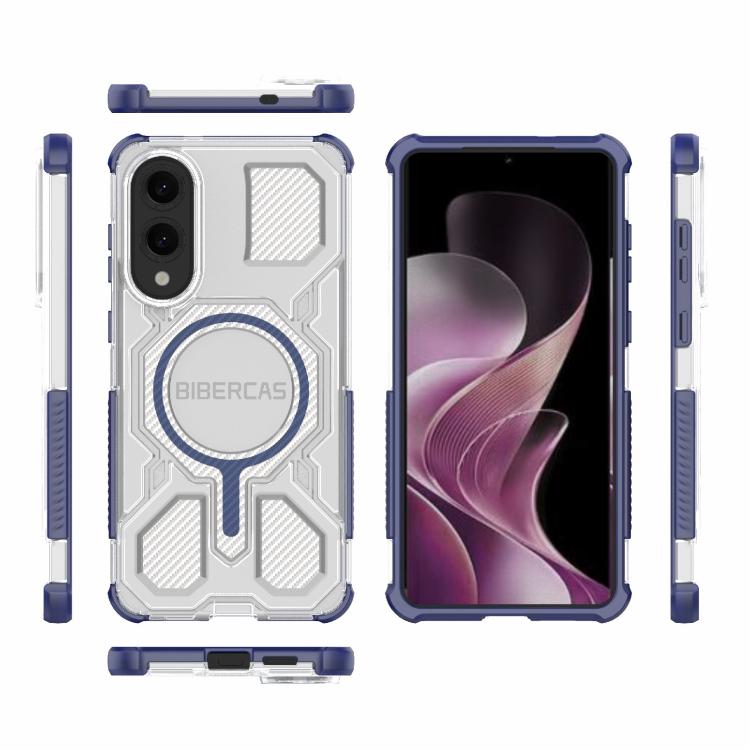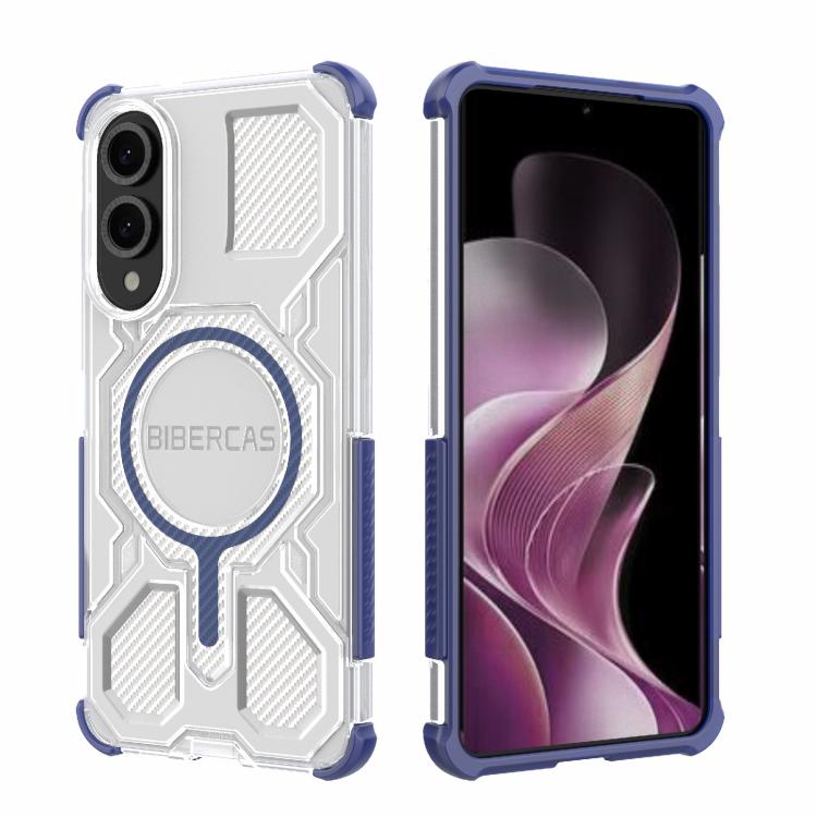 For Samsung Galaxy S25 Edge 5G BIBERCAS Transparent Color Series MagSafe Air Bag Shockproof Phone Case(Blue)