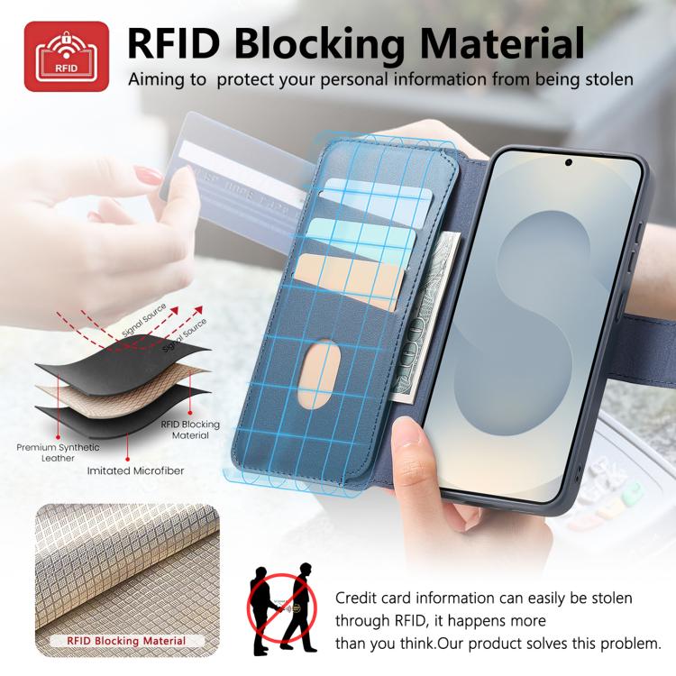 For Samsung Galaxy S25 Edge 5G CaseNeo Finger Grip Strap MagSafe Leather Phone Case(Blue)
