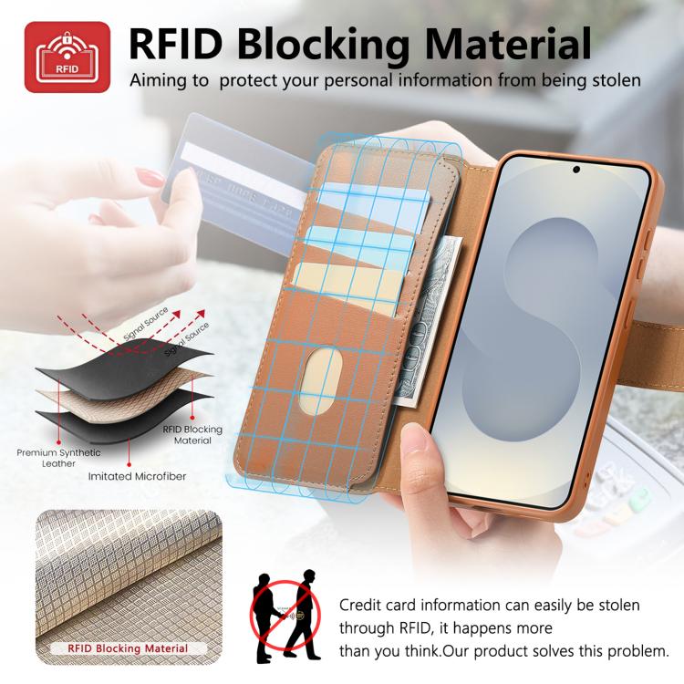 For Samsung Galaxy S25 Edge 5G CaseNeo Finger Grip Strap MagSafe Leather Phone Case(Brown)