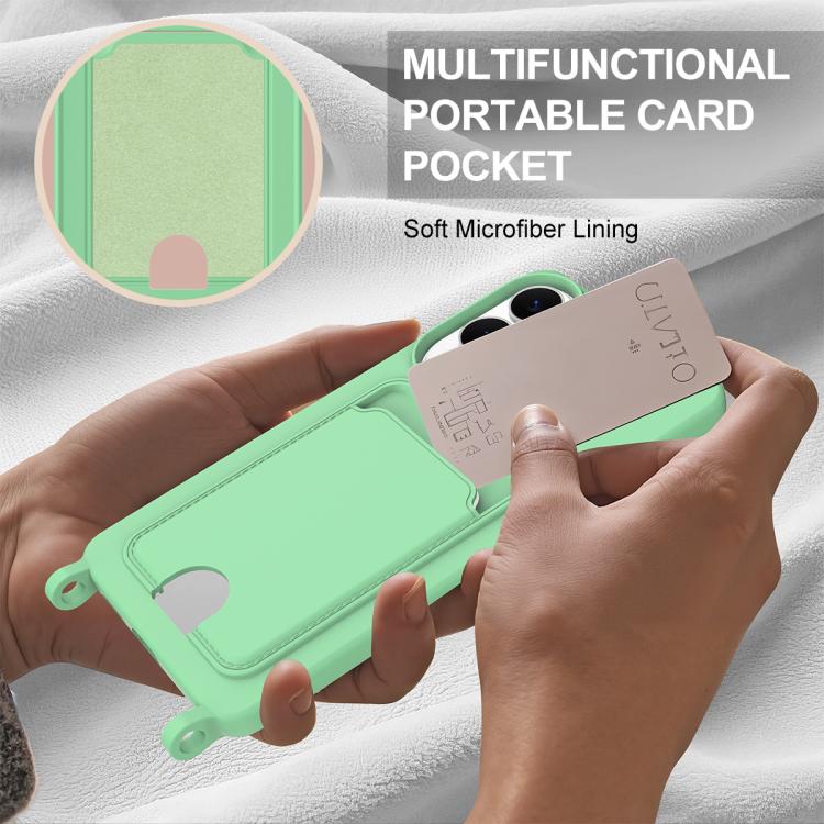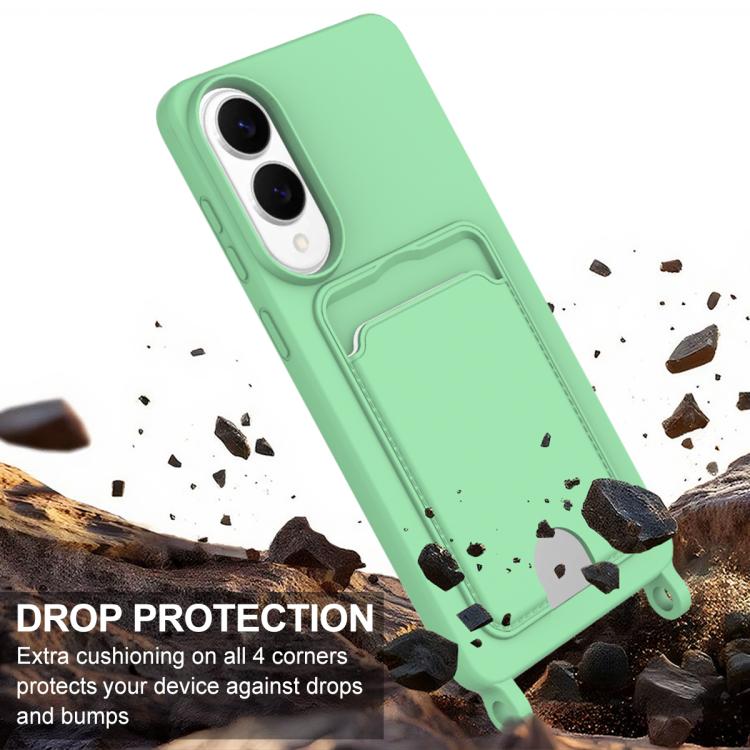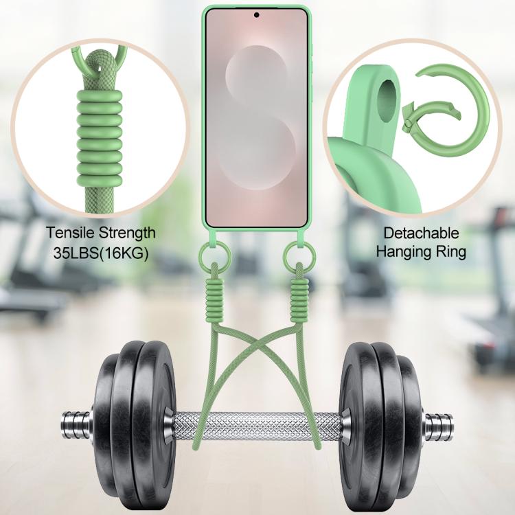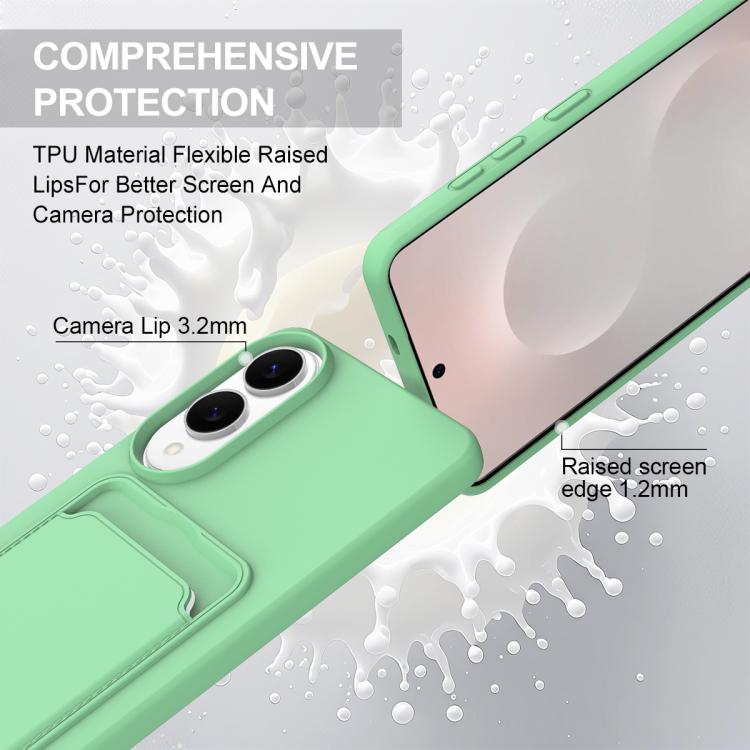 For Samsung Galaxy S25 Edge 5G Integrated Card Bag Solid Color Liquid Silicone Phone Case Gen2 with Short Lanyard(Green)
