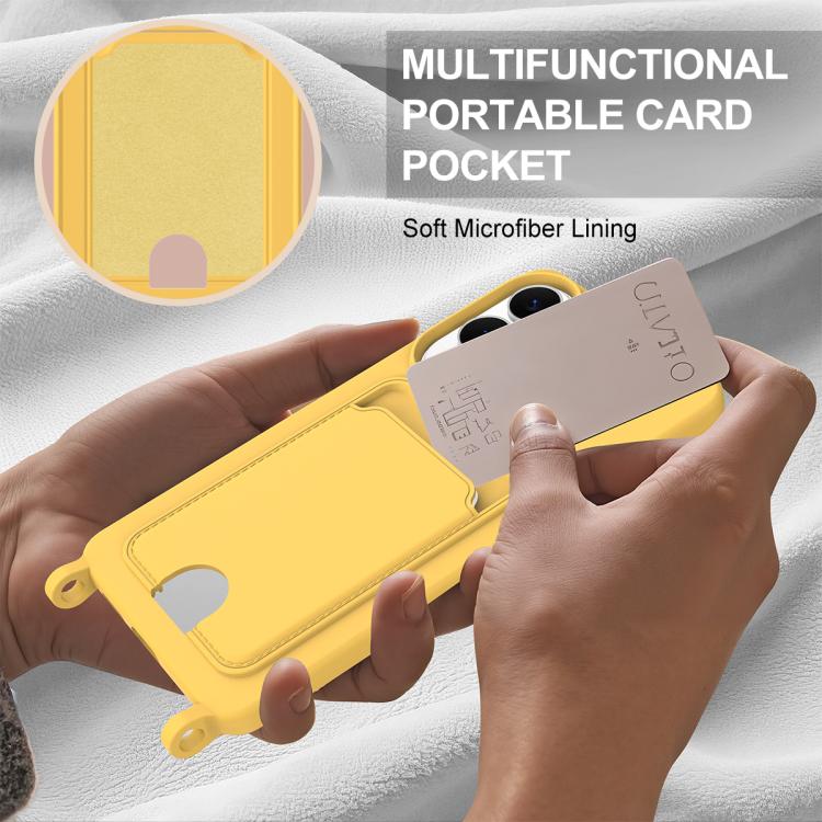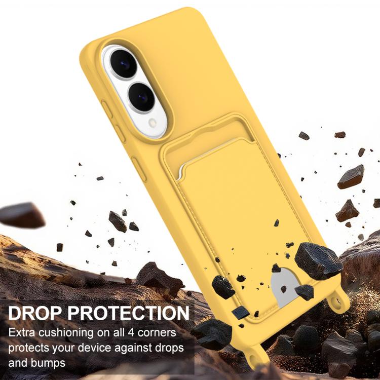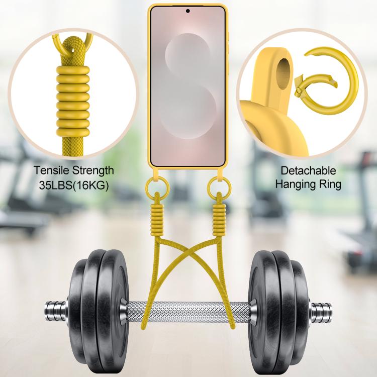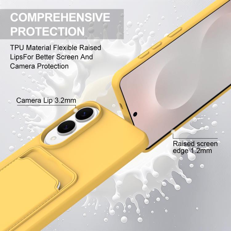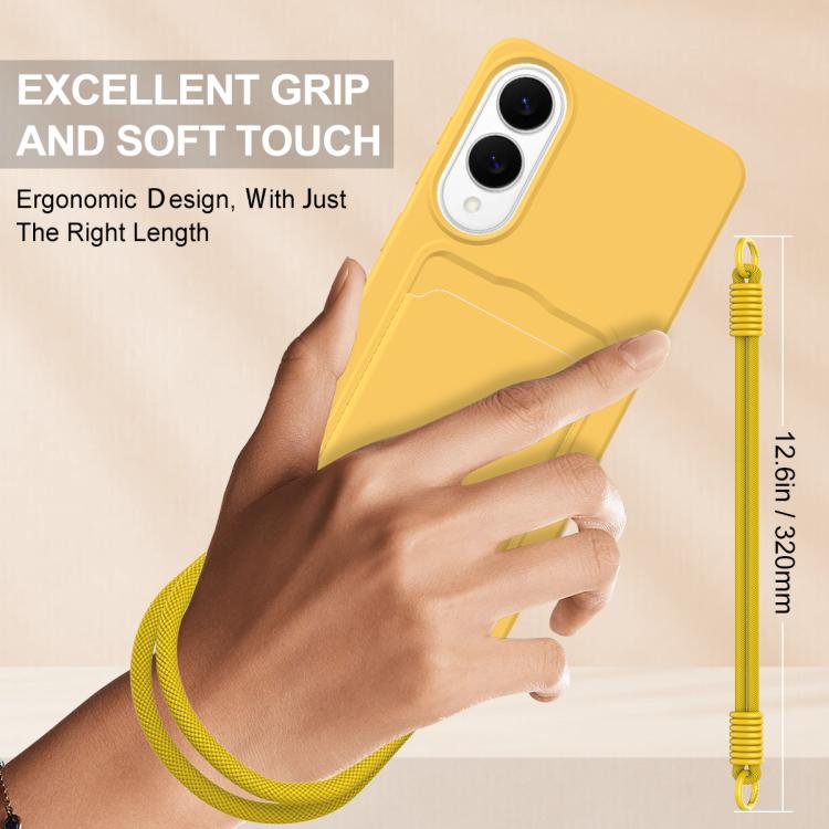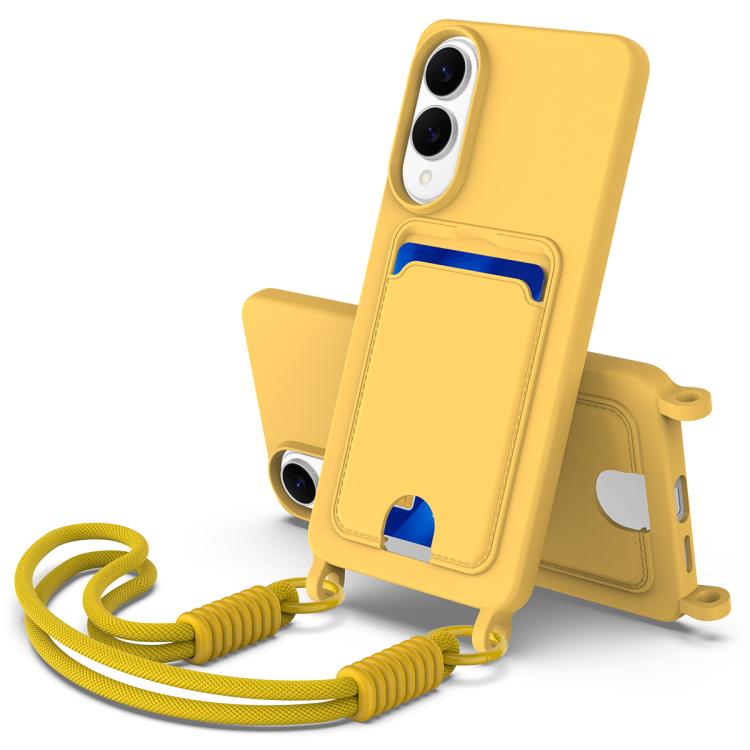 For Samsung Galaxy S25 Edge 5G Integrated Card Bag Solid Color Liquid Silicone Phone Case Gen2 with Short Lanyard(Yellow)