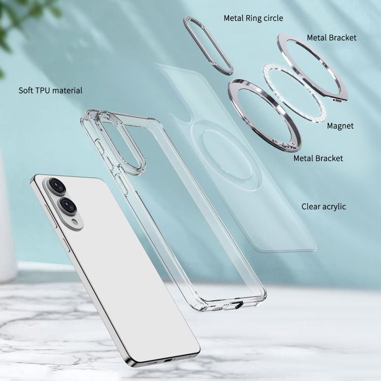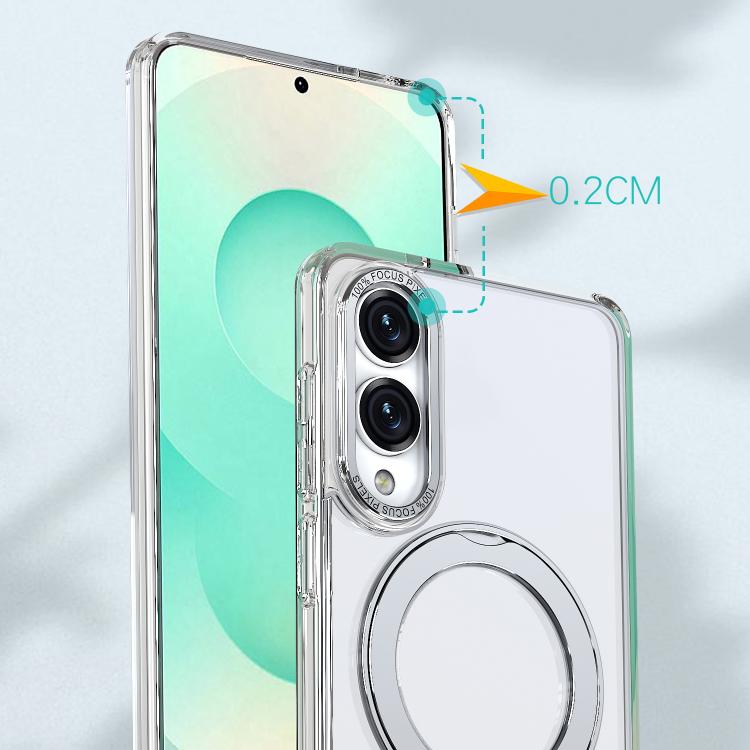 For Samsung Galaxy S25 Edge 5G kalebol MagSafe Metal Ring Holder Phone Case(Transparent)