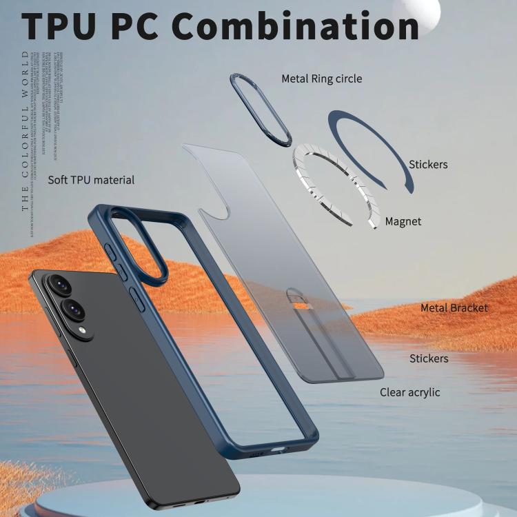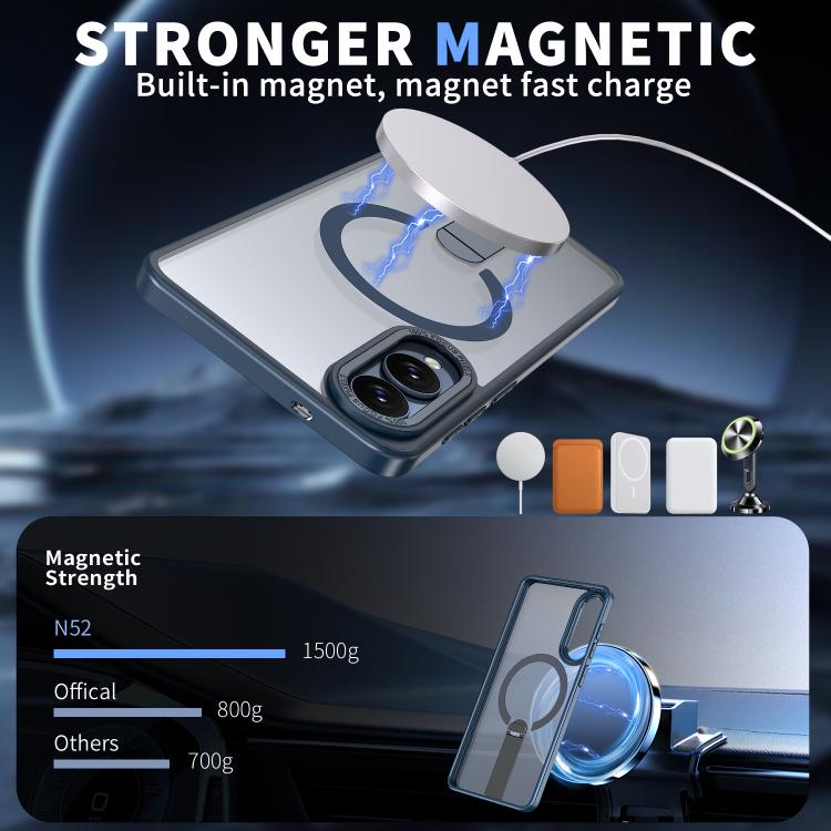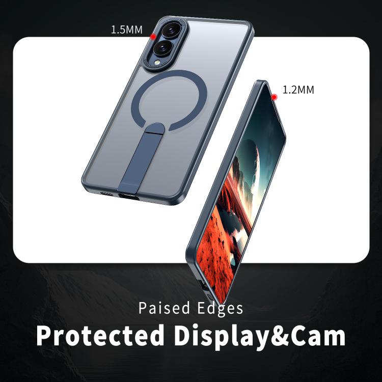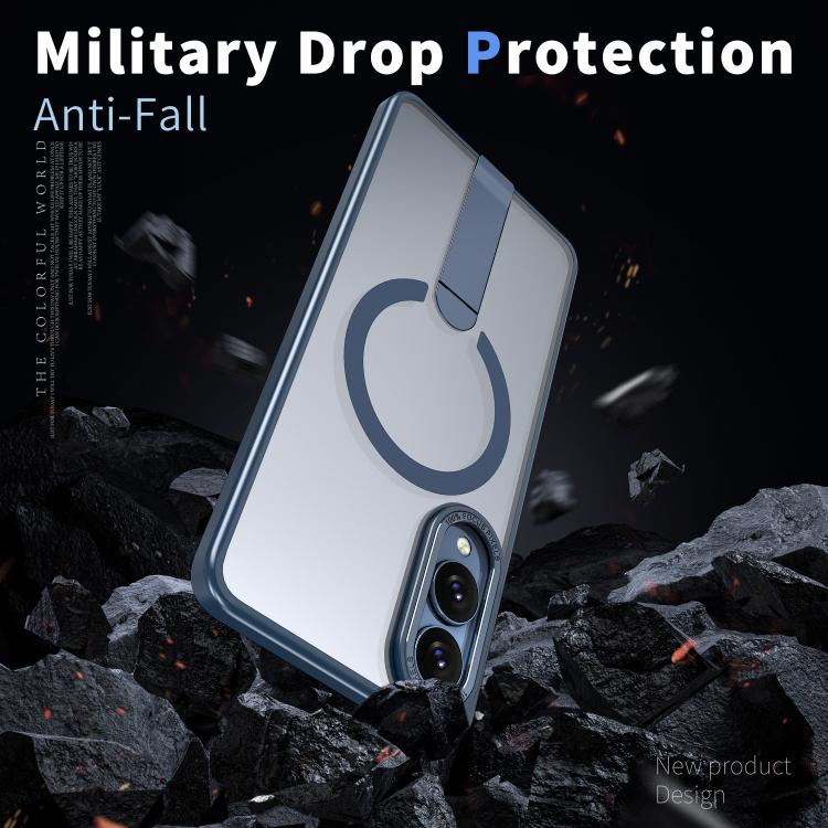 For Samsung Galaxy S25 Edge 5G Star Shine Series TPU + PC MagSafe Phone Case with Fold Holder(Navy Blue)