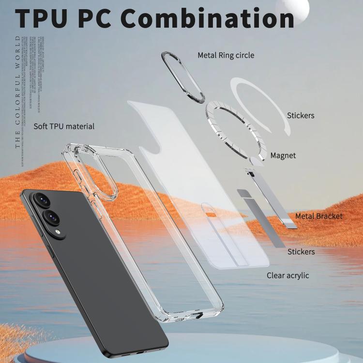 For Samsung Galaxy S25 Edge 5G Star Shine Series TPU + PC MagSafe Phone Case with Fold Holder(Transparent)