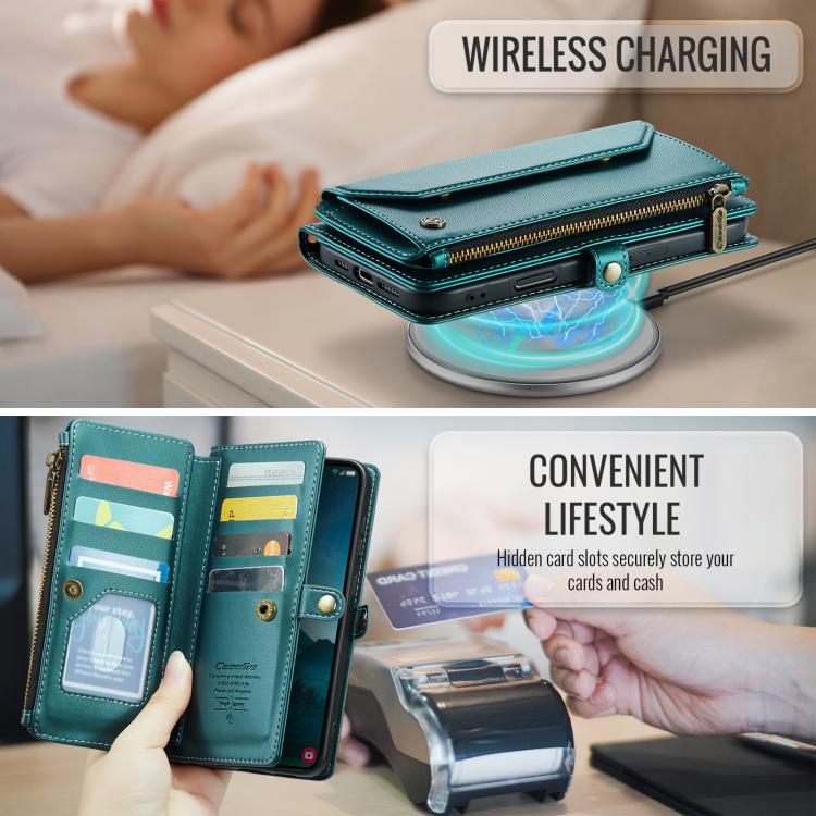 For Samsung Galaxy S25 FE 5G CaseMe C36 Card Slots Zipper Wallet RFID Anti-theft Leather Phone Case(Blue)