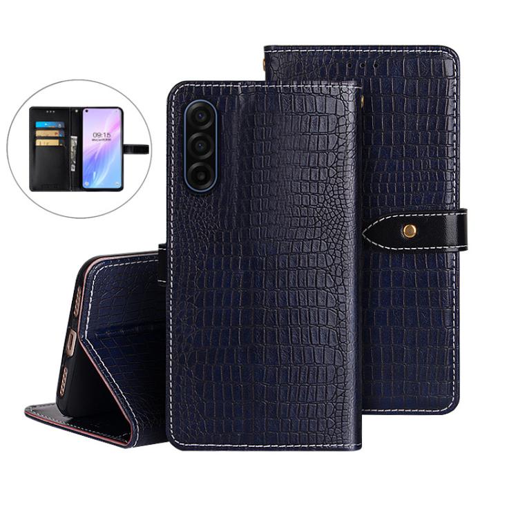 For Samsung Galaxy S25 FE 5G idewei Crocodile Texture Leather Phone Case(Dark Blue)