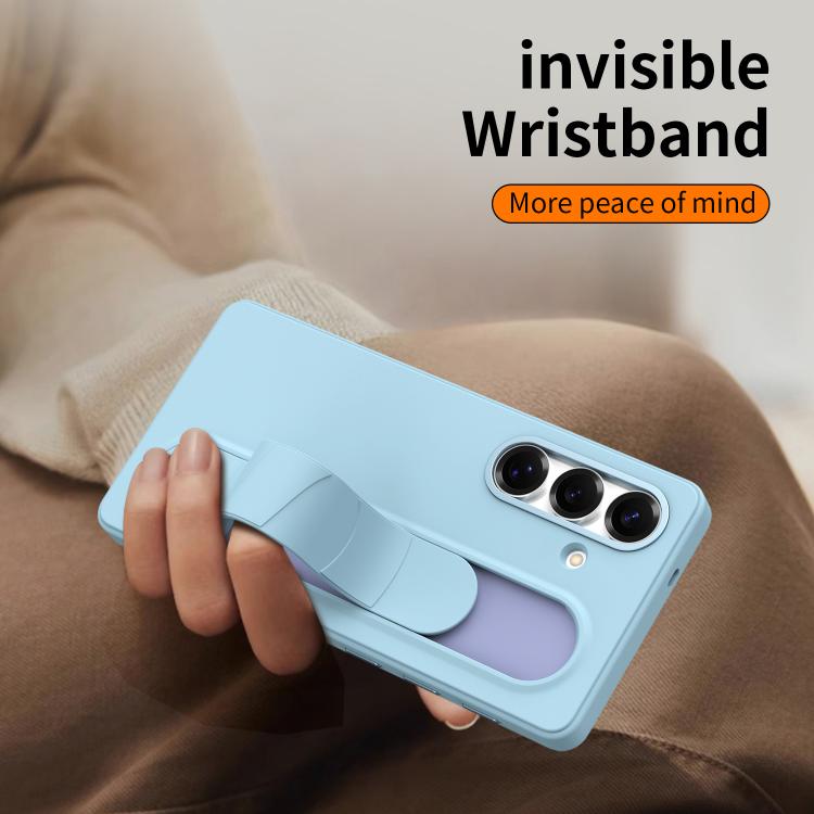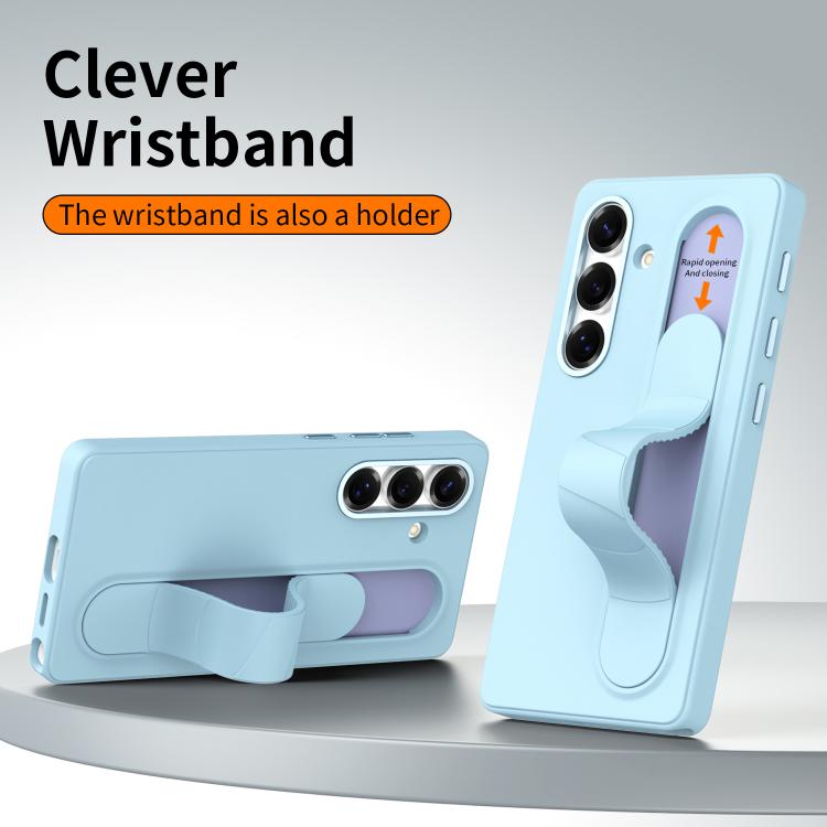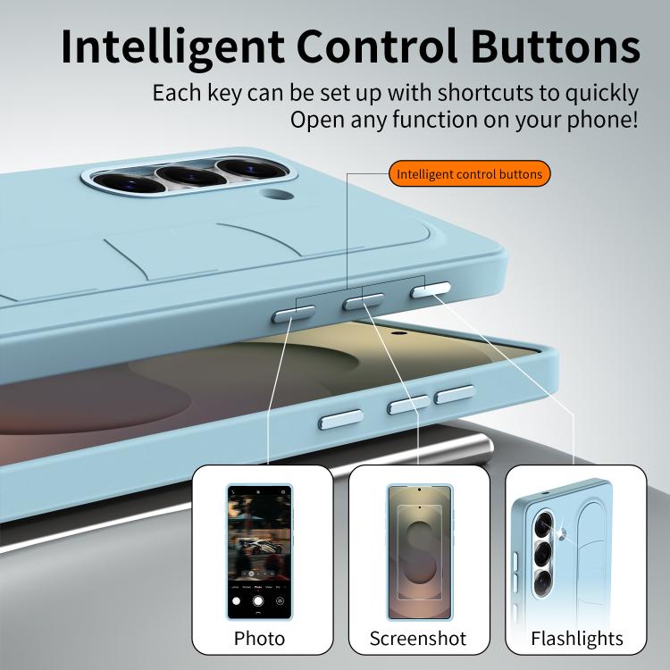 For Samsung Galaxy S25 FE 5G Intelligent Control Button Wristband Phone Case(Far Peak Blue)