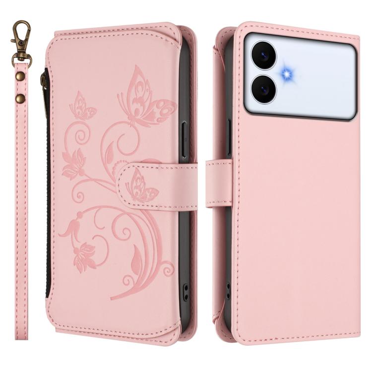 For Samsung Galaxy S26 Edge 5G Butterfly Love Flower Multi-card Zipper Wallet Leather Phone Case(Pink)
