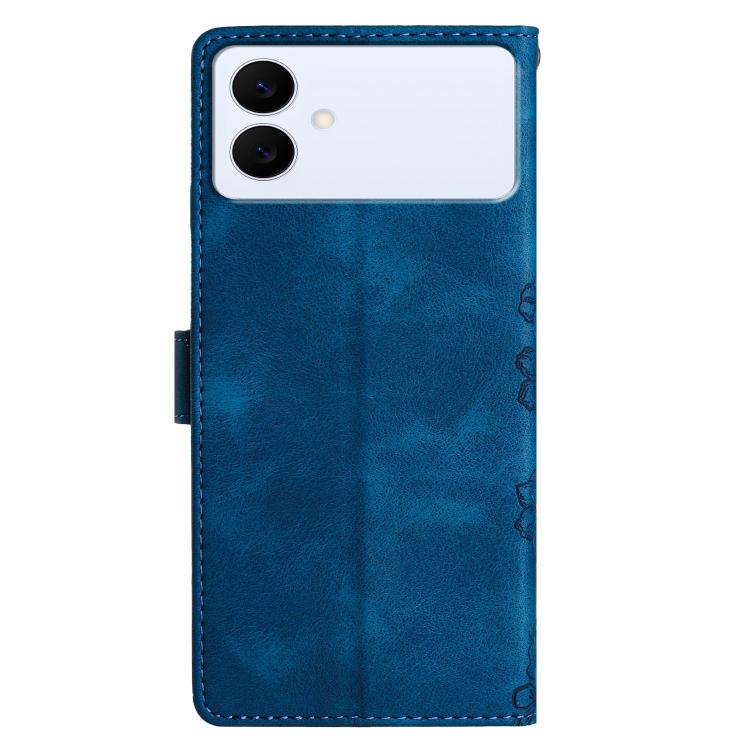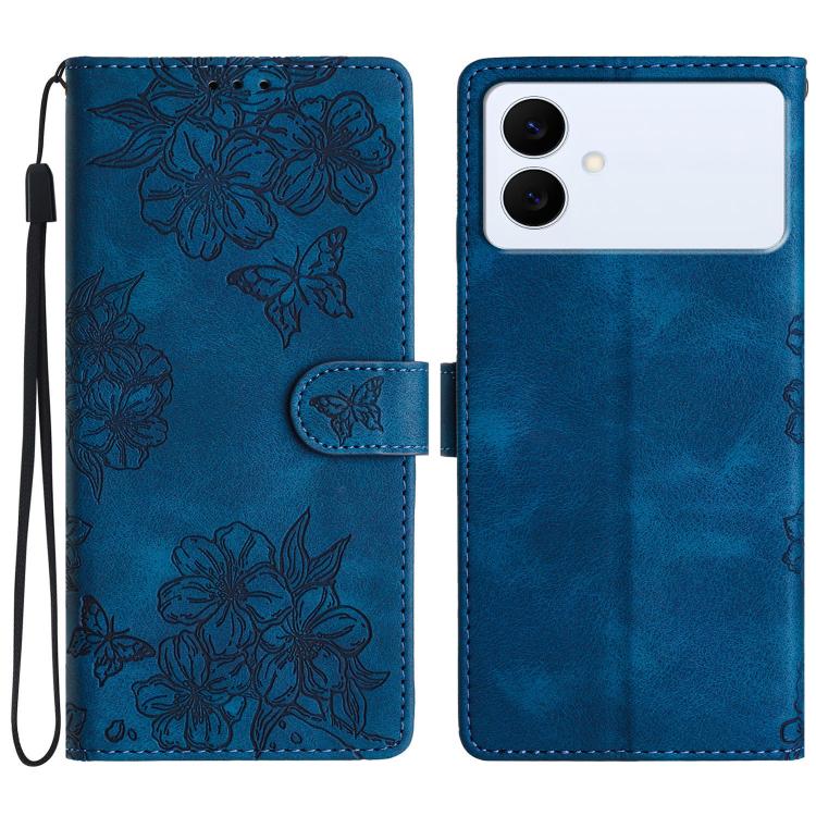 For Samsung Galaxy S26 Edge 5G Cherry Blossom Butterfly Skin Feel Embossed PU Phone Case(Blue)