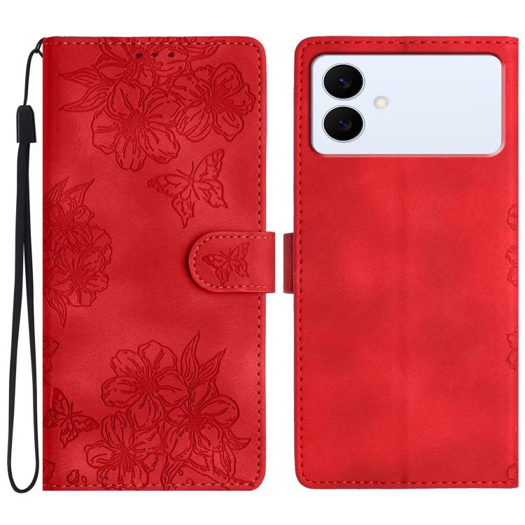 For Samsung Galaxy S26 Edge 5G Cherry Blossom Butterfly Skin Feel Embossed PU Phone Case(Red)